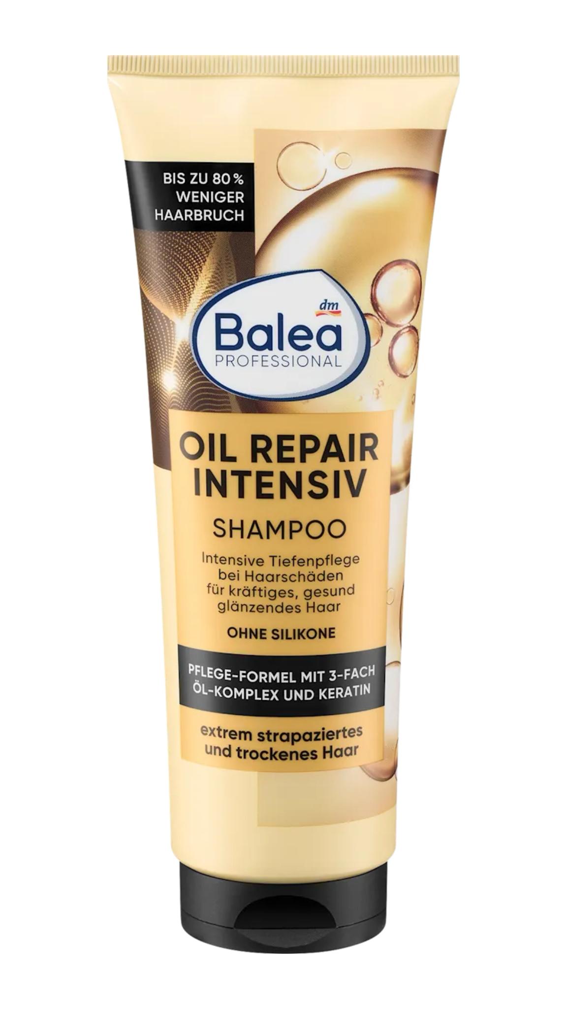 | 250ml | Le shampoing Oil Repair Intensive de Balea Professional, grâce à sa formule puissante, nourrit intensément les cheveux et leur confère une brillance soyeuse. Sa formule soin à base d'huiles d'argan, de marula et de babassu nettoie, revitalise et renforce les cheveux en douceur. Sa formule réparatrice anti-fourches prévient les dommages capillaires et réduit les fourches. Sa formule est exempte de microplastiques et de polymères hydrosolubles purement synthétiques. |